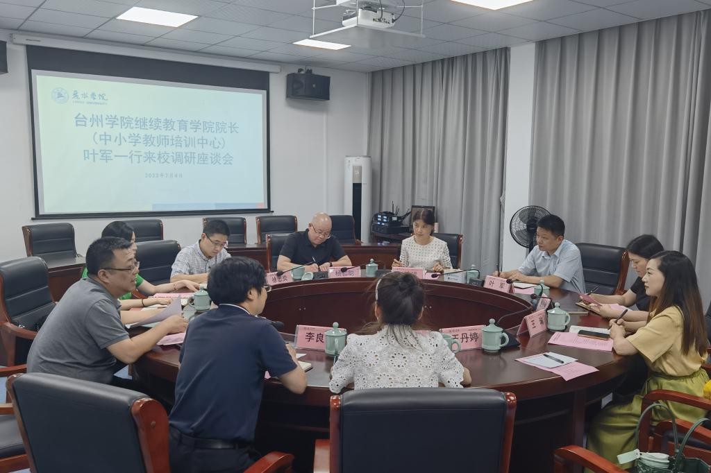 7月4日,继续教育学院院长叶军、继续教育学院直属党支部书记鲍婷婷、地方合作处(继续教育管理中心)副处长阮冰琰等一行6人赴丽水学院继续教育学院开展调研与工作交流。