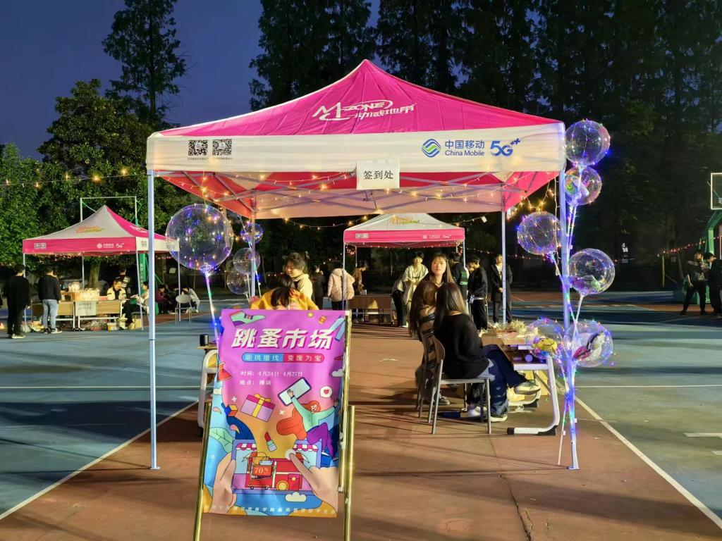 为丰富学生的日常生活,增强学生的市场经营体验,提升勤俭节约和自主创业意识,台州学院继续教育学院应用型培养项目秉承“节俭断舍离,绿色再循环”的理念,于2023年4月26日在广文校区操场举办跳蚤市场活动。本次活动采取线上组队报名、线下摆摊交易的方式,让学生在活动现场售卖各种经过Diy变废为宝的生活物品、自制小零食等。