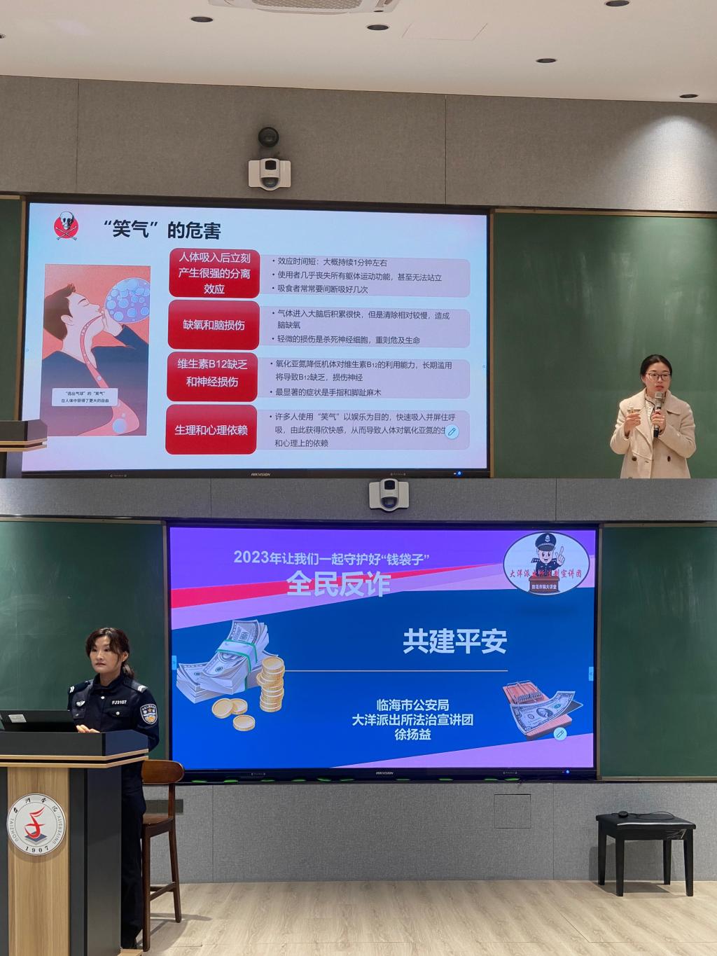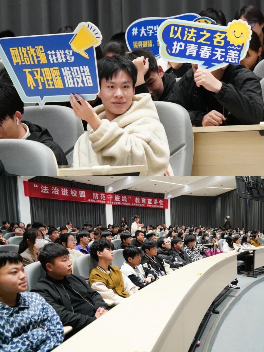 为加强校园安全稳定,增强学生的法治思维、法治观念、法治意识。3月23日下午,继续教育学院联合临海市人民检察院、临海市公安局大洋派出所、校保卫处,在临海城东校区A6教室举行“法治进校园 防范守底线”教育宣讲会。