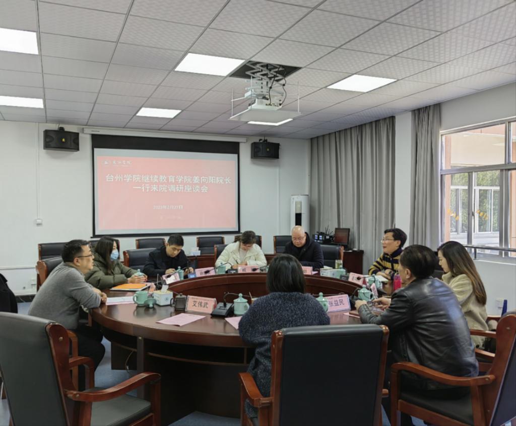 交流会上,王峰院长总体介绍了该院的发展情况、办学机制、人员结构、办学规模、发展策略、指导思想、制度建设等,徐俏琳副院长着重介绍了学历教育的管理机制,职业技能部主任蓝傅瑜详细讲解了丽水学院职业技能培训的项目内容,并分享了如何更好发展职业技能培训项目的经验。随后,姜向阳介绍台州学院继续教育学院整体办学情况。会上双方还围绕高等学历继续教育改革、社会培训等方面进行深入交流。