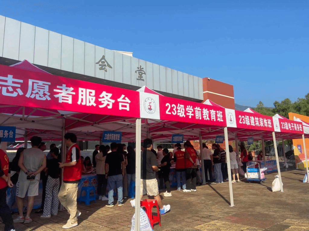 9月10日,学校喜迎210名2023级职场创新班新生。影剧院前整齐划一的迎新帐篷,创意十足的拍照打卡点,路上温馨励志的迎新语,承载着学院对新生的美好期待。