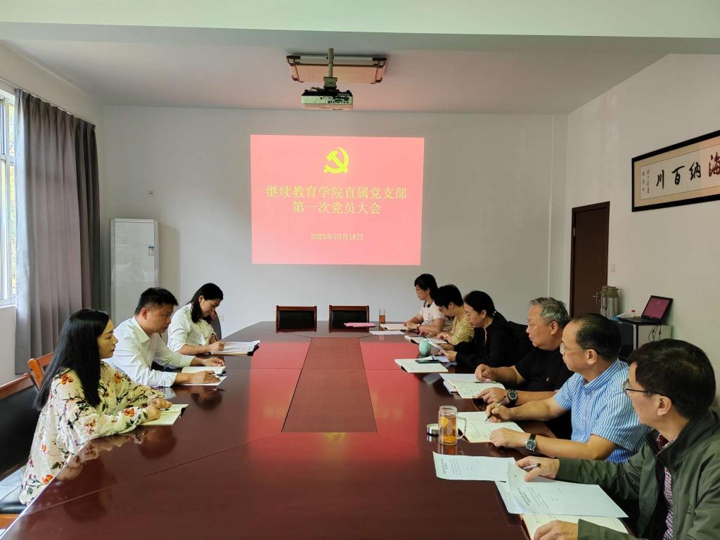 10月18日,继续教育学院直属党支部第一次党员大会在继续教育学院会议室召开。继续教育学院全体党员参加大会,会议由党支部书记鲍婷婷主持。