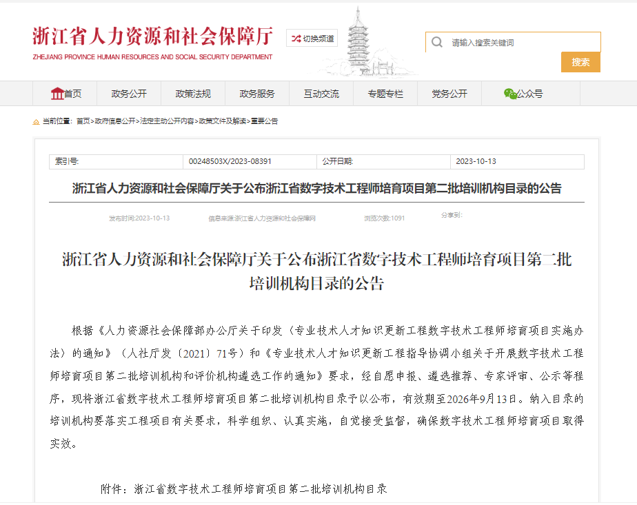 数字技术工程师培育项目是人社部贯彻落实中央人才工作会议精神的重要工作举措,是国家专业技术人才知识更新工程的重要组成部分。加快数字技术人才培养,助力浙江数字经济创新提质“一号发展工程”,我省出台了数字技术工程师培育项目实施方案,计划到2030年末,围绕人工智能、物联网、大数据、云计算、数字化管理、智能制造、工业互联网、虚拟现实、区块链、集成电路等数字技术工程应用领域,培育数字技术工程师1万人以上。