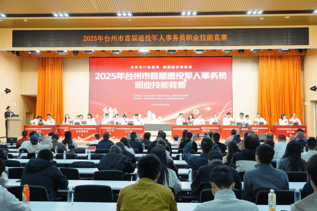 10月23日至24日,2025年台州市首届退役军人事务员职业技能竞赛在我校举行。该活动由台州市退役军人事务局、台州市人力资源和社会保障局主办,旨在加快构建退役军人事务系统专业化人才队伍,全面提升退役军人服务保障水平。省退役军人服务中心副主任陈荣赠、台州市退役军人事务局副局长崔立勇出席竞赛,副校长、党委委员李建军致辞