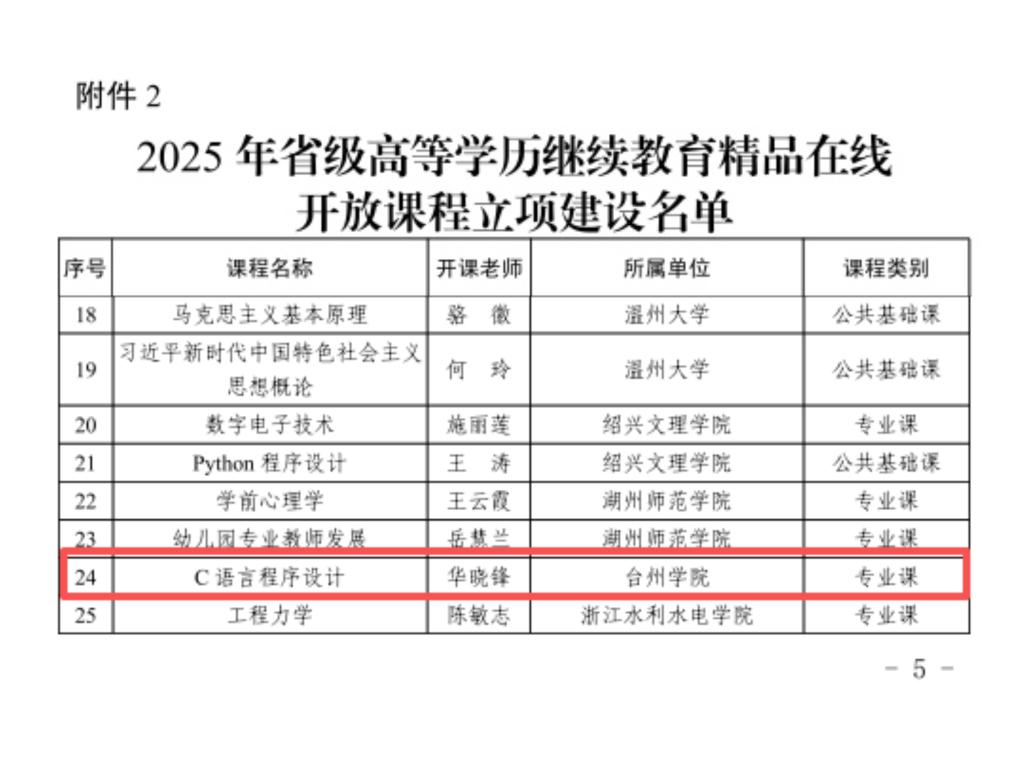 近日,由继续教育学院牵头申报的《C语言程序设计》课程成功入选浙江省高校学历继续教育精品在线开放课程立项名单。